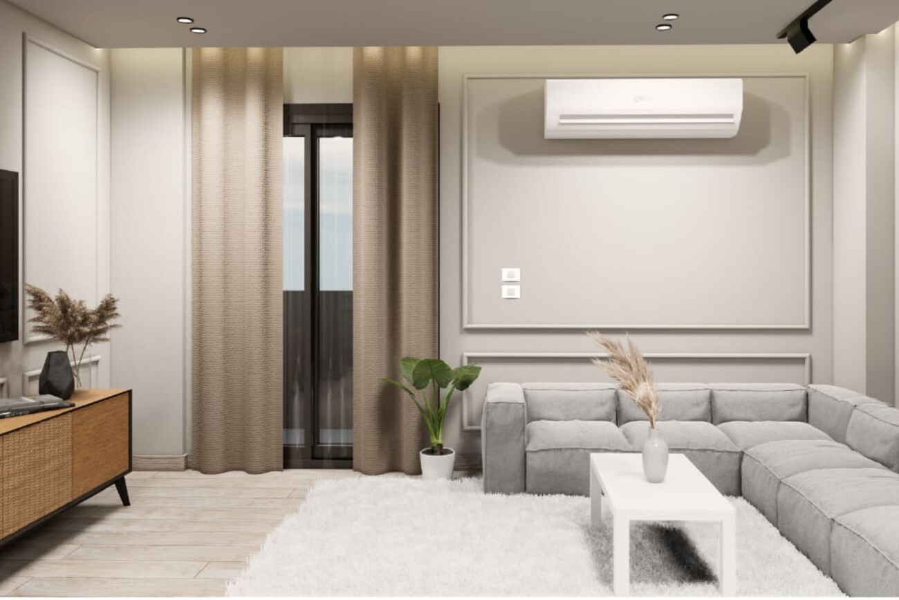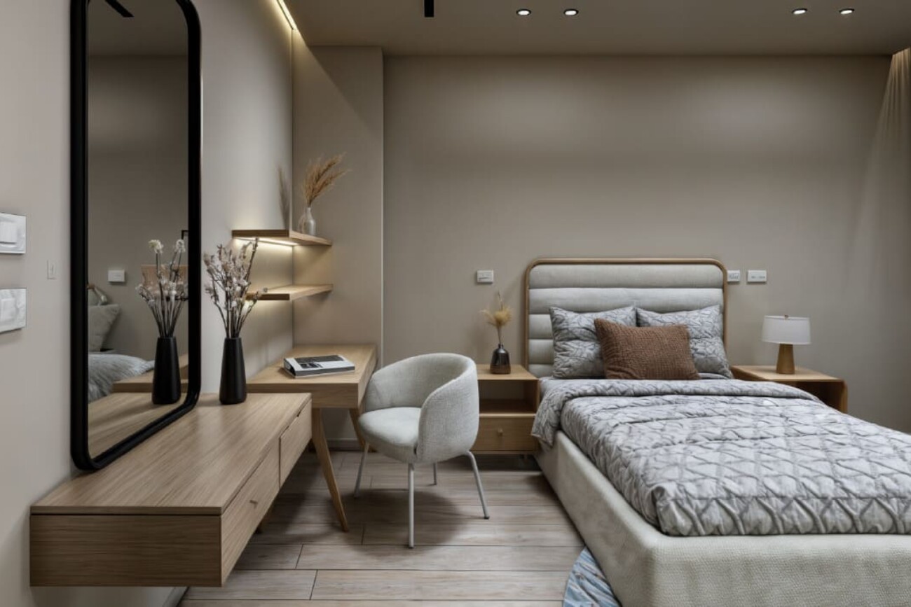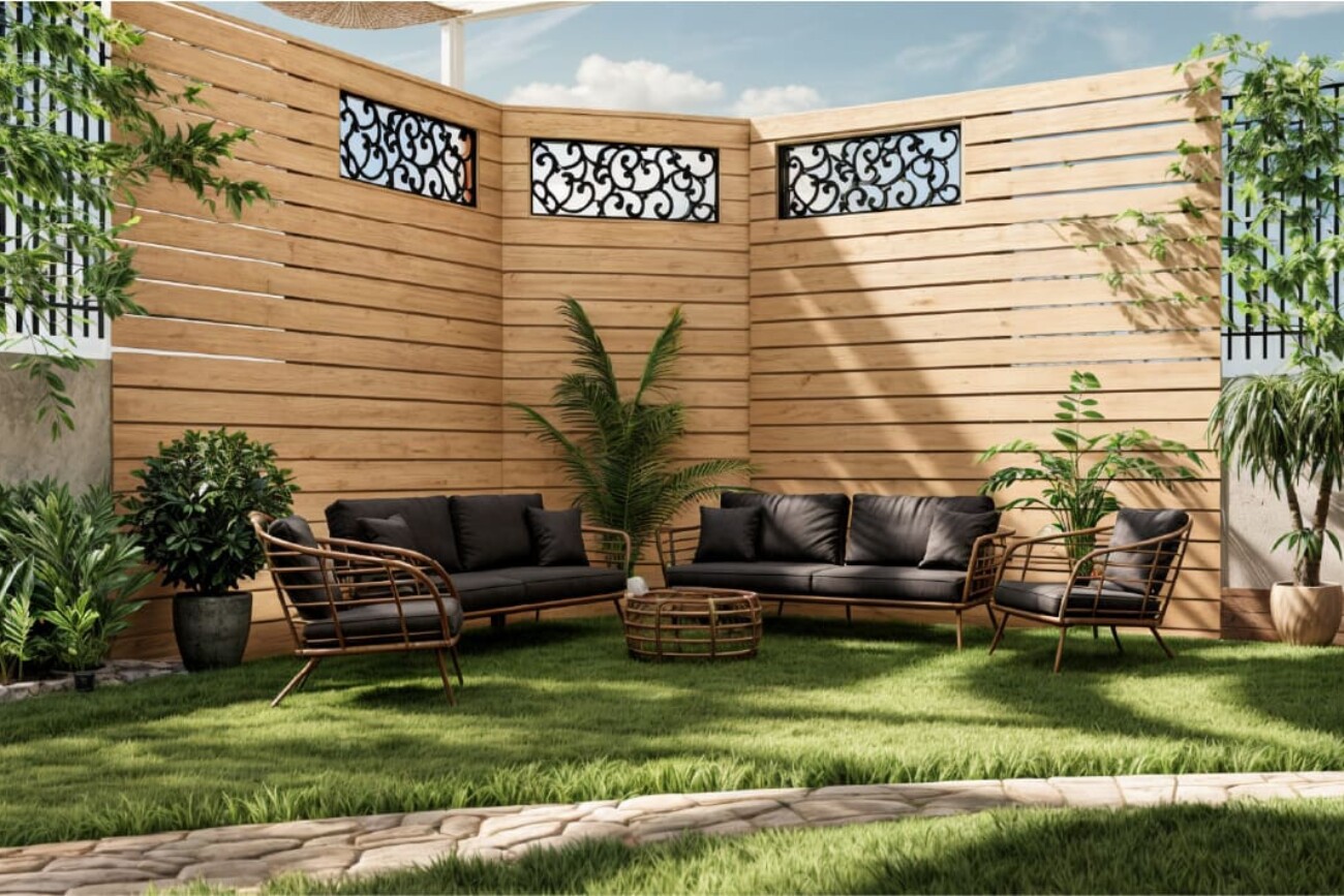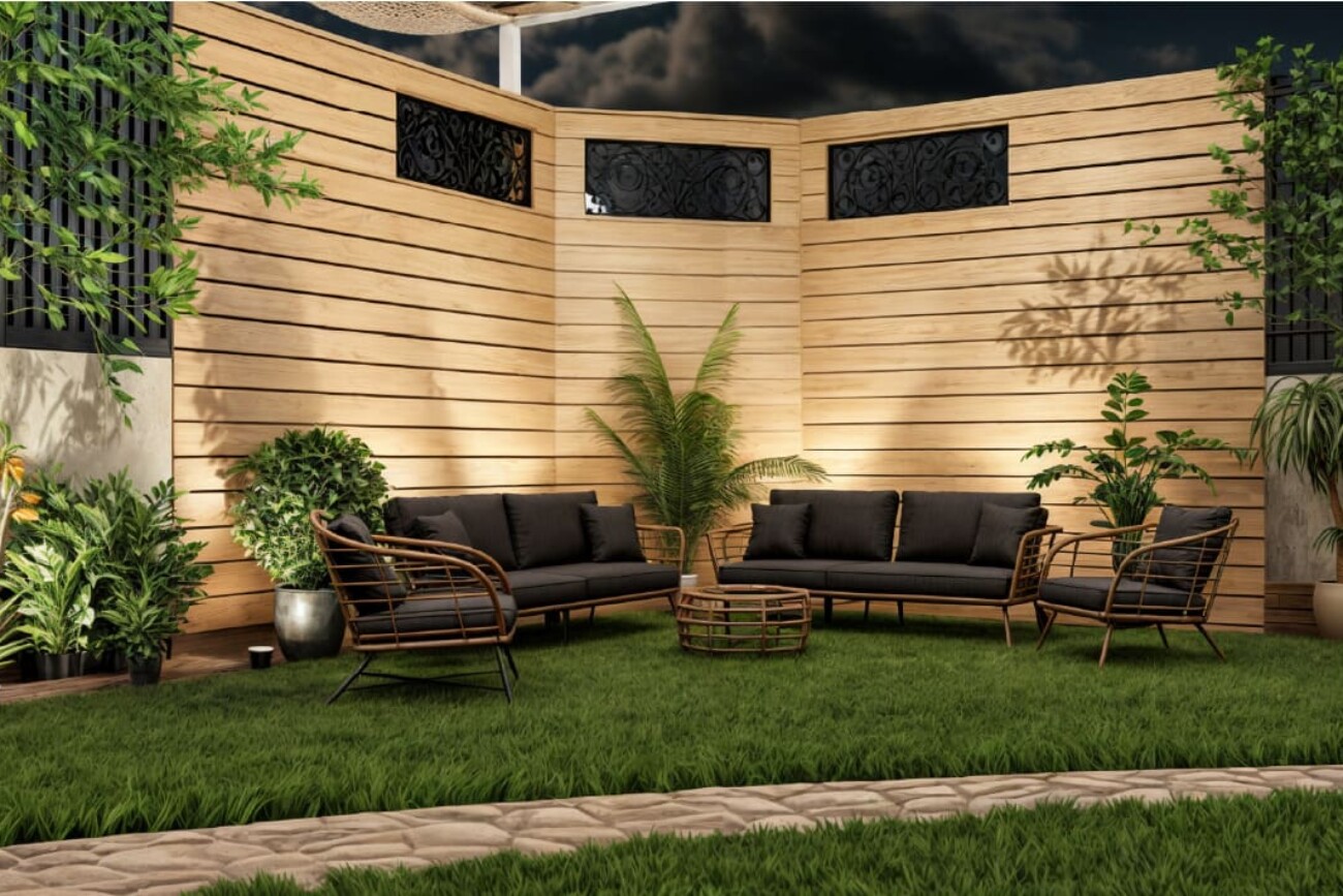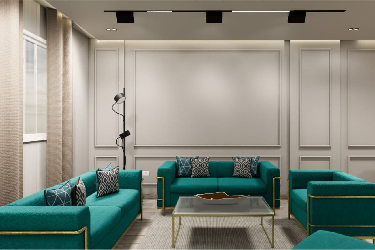 The project involves designing a 3D interior for a ground floor apartment with a garden.