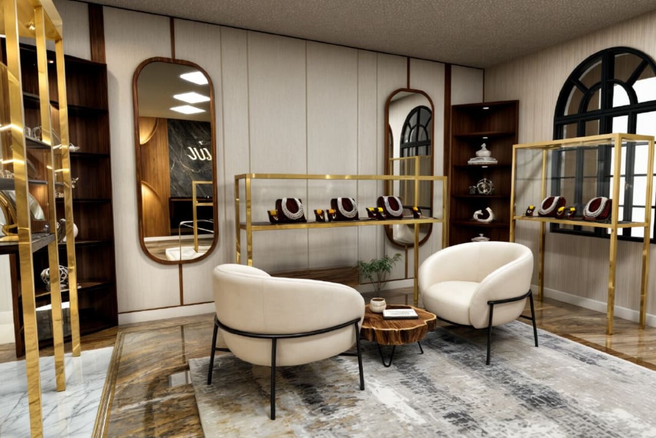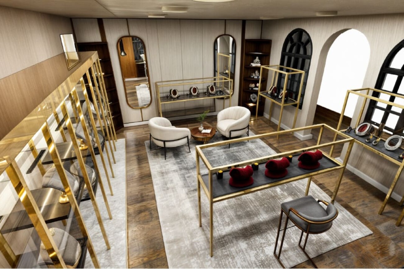 The goal is to create a luxurious and inviting environment that enhances the jewelry’s appeal and provides a memorable shopping experience.